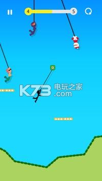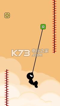 点击屏幕按住不动就是拉住绳子,松开手指就是方块绳子,要在合适的时候点击,让角色摆动。